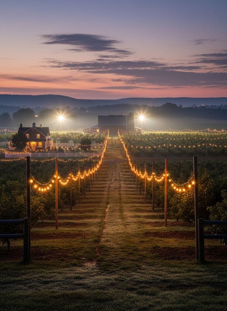 - إضاءة جمالية: حول البيت داخل المزرعة، أو على أشجار قريبة من الجلسة. هذه يمكن أن تكون هادئة ودافئة، فقط تعطي منظرًا جميلًا وإحساسًا بالراحة.